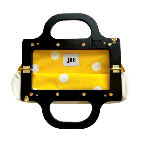 The jae Lacquer handle – structured just like our other handbag handles, but in lacquered paint! Pair the handle with one of our liners (sold separately) that come in Shortie, Medium and Long sizes to create a complete “base bag.” See photos for examples of liner sizes.